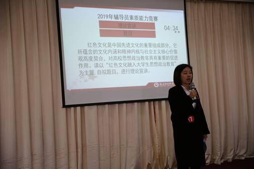 決賽分為前期網文寫作和現場案例分析、理論宣講兩個環節,案例分析圍繞學生戀愛問題、寢室人際關系、學生網絡輿情、學生心理問題等學生群體中經常出現的問題,考察輔導員的判斷問題、分析問題和解決問題的能力。理論宣講主題圍繞新時代公民道德建設實施綱要、輔導員的初心和使命、紅色文化融入大學生思想政治教育等主題展開,主要考察輔導員的理論宣傳闡釋能力,注重考察政治性、思想性、理論性、政策性、導向性。選手們準備充分、沉穩從容,出色的表現展現了我校輔導員風采。