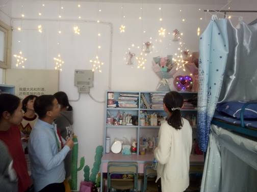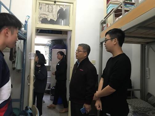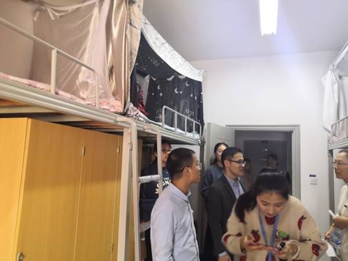 2019年12月26日下午,副校長、文明宿舍評比領導小組組長陳貞健帶領評比領導小組成員開展學期學生宿舍總評工作,考評的對象是本學期在宿管科、各系學生會勞動部、院學生會勞動部日常檢查評分的基礎上位列綜合前20名的宿舍。