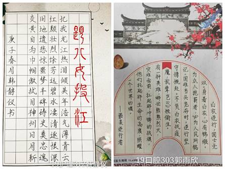 除了誦讀抗疫詩文外,同學們還通過設計作品傳遞對革命先烈以及在抗擊新冠肺炎疫情中犧牲的“逆行者”和在四川涼山森林火災中犧牲的滅火英雄的緬懷悼念。