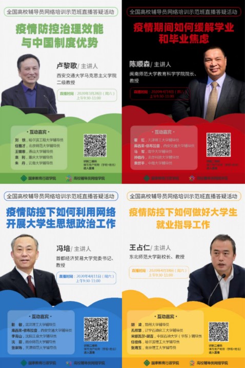 同時結合每周一次的直播課形式,緊密貼合疫情當下青年學生的思想政治工作、學業就業指導等主題設置,搭建起思政工作領域專家、全國高校輔導員年度人物與輔導員交流研討的平臺,有力促進學員相互學習共同成長。