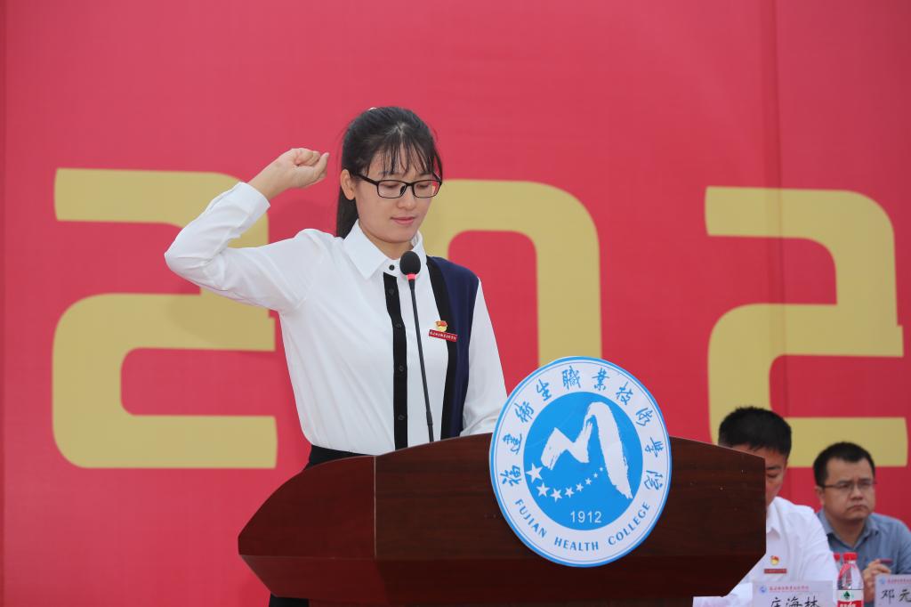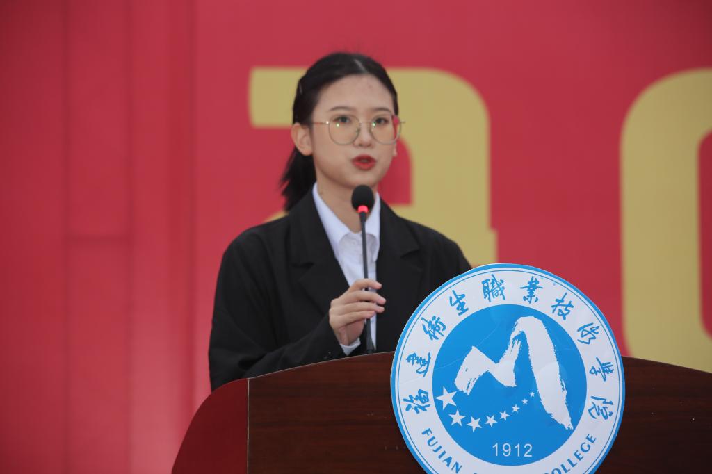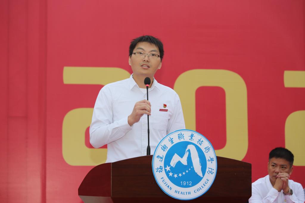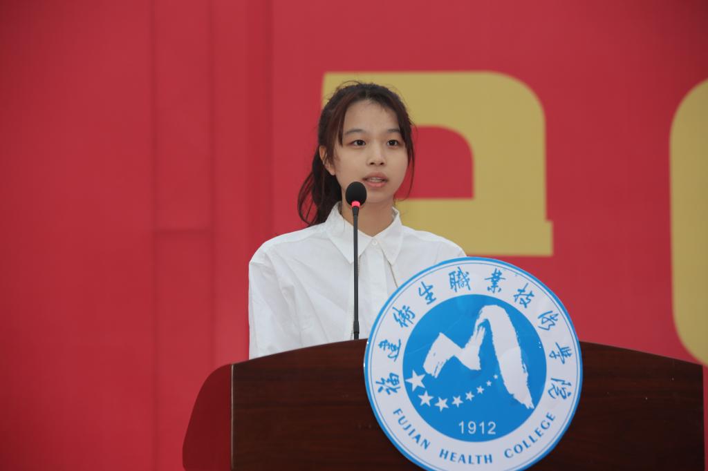 校團委學生副書記20護理303班黃杏怡同學作為學長代表,回顧了自己在閩衛院一年的經歷,分享了在過去一個月里參與疫情防控工作難忘的經歷和感悟,向學弟學妹們送上美好的祝愿,希望他們的未來熠熠生輝,成為更好的自己。