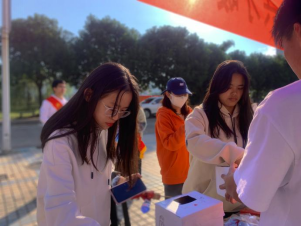 秋風蕭瑟天氣涼,草木搖落露為霜。活動工作人員在寒風中堅守崗位,以嚴謹認真的態度為前來咨詢的同學答疑解惑。