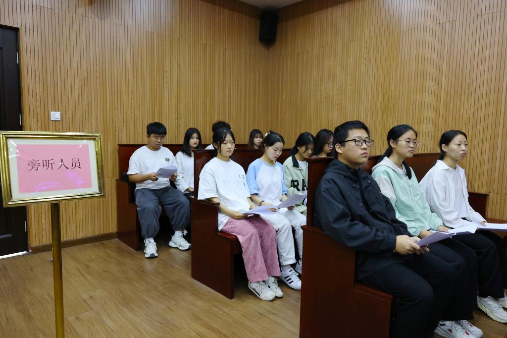 本次法院開庭審理一件危險(xiǎn)駕駛罪案件和一件非法吸收公眾存款罪、洗錢罪、妨害信用卡管理罪數(shù)罪并罰的案件。通過現(xiàn)場開庭的方式,將真實(shí)的庭審現(xiàn)場直觀地展現(xiàn)在學(xué)生面前,以鮮活的案例教育學(xué)生,讓學(xué)生“零距離”接受法治教育,真切感受違法犯罪帶來的嚴(yán)重后果,更加深刻地理解學(xué)法、懂法、守法、用法的重要性。