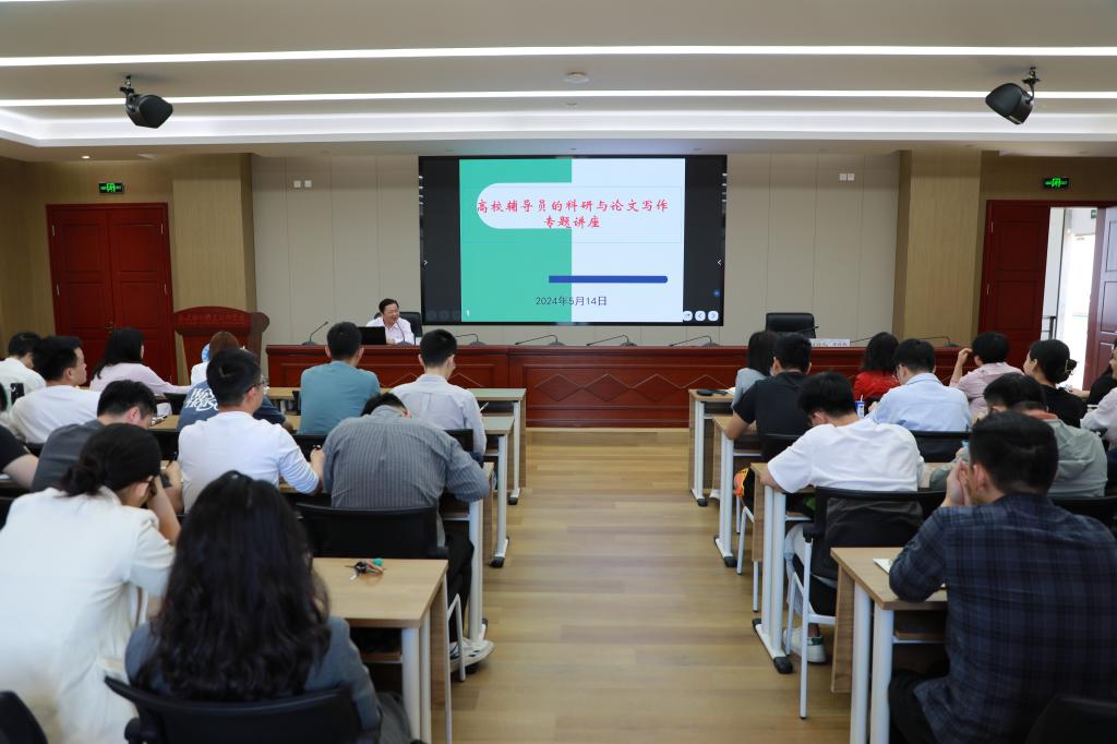 為提升我校輔導員的科研素養和論文寫作水平,促進輔導員隊伍的專業化發展,5月14日,福建農林大學黃旺生教授以“高校輔導員的科研與論文寫作”為主題,為我校輔導員開展專題講座。全體專兼職輔導員參加講座,講座由學生工作部部長陳俊穎主持。