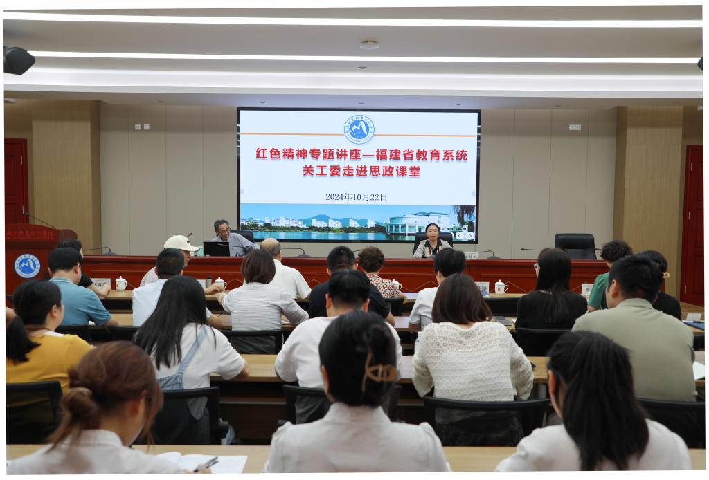 為深入學習貫徹習近平新時代中國特色社會主義思想,發揚紅色傳統,傳承紅色基因,引領師生繼續堅定跟黨走、建功新時代,10月22日,我校關工委邀請福建省教育系統關工委主任陳晃走進學校思政課堂,為校師生代表舉辦紅色精神專題講座,福建省教育系統關工委副秘書長、辦公室主任羅永倩陪同。校關工委主任嚴肅、副主任陳雄出席講座,校關工委、二級學院關工委、學生工作部黨支部、團委負責人、輔導員代表和學生代表共100余人參加講座,講座由副校長、校關工委副主任黃銘珊主持。