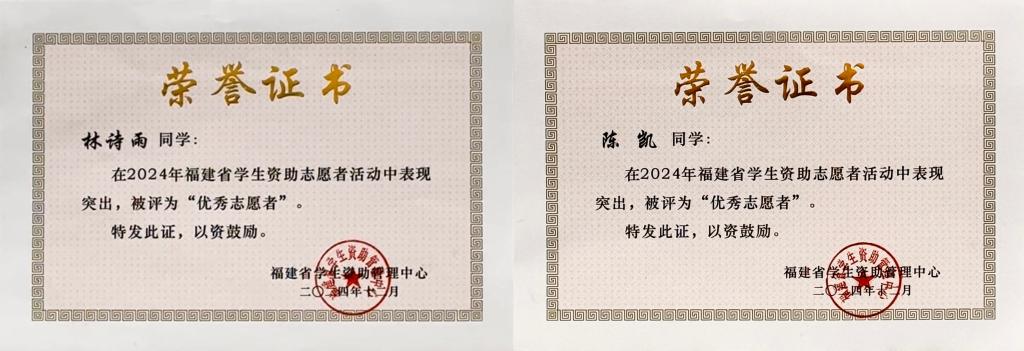 被評為2024年福建省學生資助優(yōu)秀志愿者