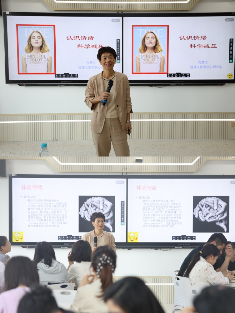 為助力輔導員提升情緒管理能力,以更積極健康的狀態投入育人工作,4月29日,我校特邀福建江夏學院社會心理研究所負責人方慧蘭副教授為全體輔導員開展“認識情緒,科學減壓”專題培訓。