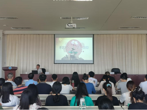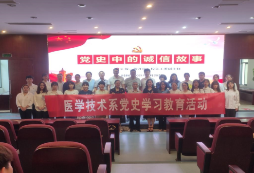 5月20日,校關(guān)工委副主任黃開良為醫(yī)學技術(shù)系黨員教師和131名入黨積極分子講述黨史中的誠信故事,他圍繞開展黨史學習教育的重大意義,通過“誠信為公的紅色金融家--高捷成”“寫在墻上的留款信”等黨史中的誠信故事,將學習黨史和誠信教育融會貫通、有機結(jié)合,講述了黨的百年奮斗史,彰顯中國共產(chǎn)黨以誠信贏得人民信任、取得人民支持,引導學生用黨的奮斗歷程和偉大成就鼓舞斗志、明確目標,樹立和踐行社會主義核心價值觀。