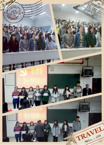 藥學系第十六期業余分黨校結業典禮于2016年1月5日下午在藥二階隆重召開,藥學系黨總支書記蘇愛華老師、第一黨支部書記葉雅沁老師、學生黨支部書記陳瑜老師、團總支書記李寶珠老師、團總支副書記黃嵩梅老師以及輔導員胡丹老師、蘇素嬌老師、陳翰老師出席了本次結業典禮。