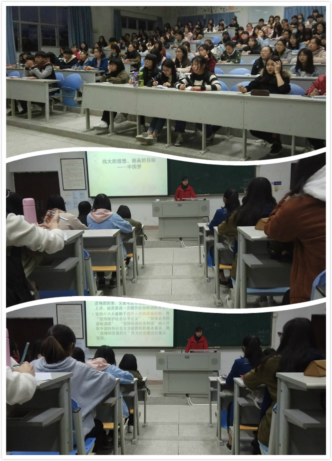 2017年12月14日,藥學系學生黨支部書記蘇素嬌老師在藥二階為第二十期業余分黨校學員們講授 “偉大的理想,崇高的目標——中國夢”的專題黨課。 蘇素嬌老師首先為同學們講解了什么是“中國夢”,并帶領學員們回顧了實現中國夢的重要時代特征與歷史發展;隨后,蘇素嬌老師以實現中國夢的“兩個百年”、“兩重任務”與阻礙中國夢發展的三大問題作為重點為同學們進行了詳細分析,同學們紛紛表示受益良多,為自己制定一個清晰的目標,在日常生活中要抓好學習,提高本領,為早日實現中國夢而努力奮斗。