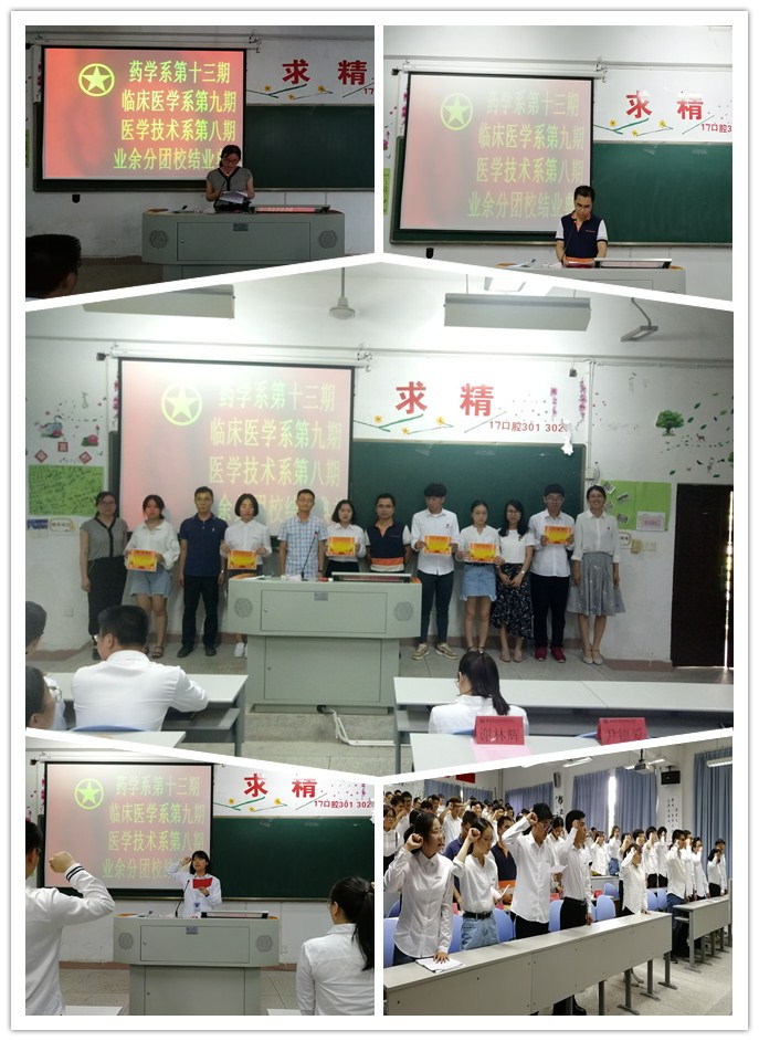 2018年5月2日,由藥學(xué)系、臨床系、醫(yī)學(xué)技術(shù)系聯(lián)辦的業(yè)余分團(tuán)校結(jié)業(yè)典禮在臨床系一階隆重舉行。蒞臨本次大會的老師分別是系團(tuán)總支書記黃嵩梅、副書記尹德愛、臨床醫(yī)學(xué)系團(tuán)總支書記葉家濤、副書記謝林輝以及醫(yī)學(xué)技術(shù)系團(tuán)總支書記黃玲云、副書記曾慶才。結(jié)業(yè)典禮由楊慶玲同學(xué)主持。