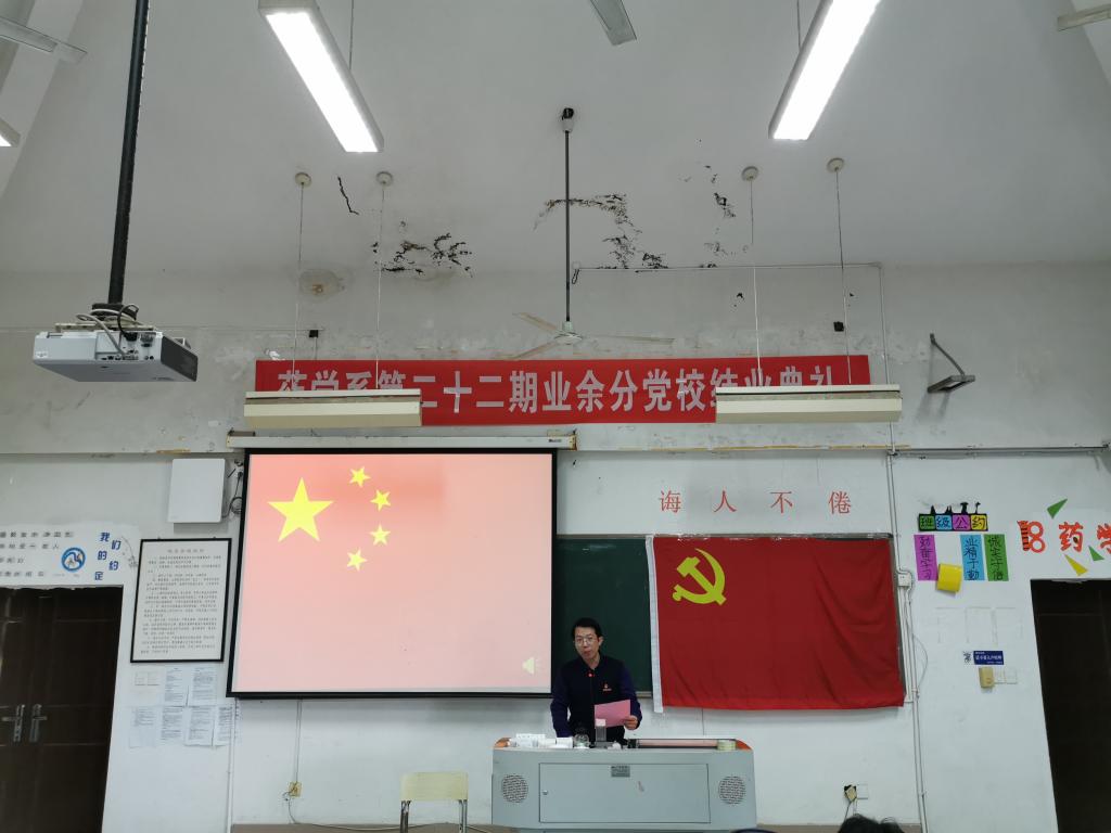 大會在莊嚴的《國際歌》中落下帷幕。至此,藥學系第二十二期期業余分黨校圓滿結業,經歷了一個月的學習,學員們清楚地認識到黨在我國的重要地位,意識到到自己身上所肩負的責任,更加堅定理想信念,努力提升自身修養,在思想上逐步向黨組織靠攏。