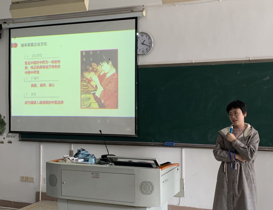 本場(chǎng)講座由藥學(xué)系第一黨支部書記何舒瀾老師主講,講座詳細(xì)介紹了“中國(guó)北京同仁堂(集團(tuán))有限責(zé)任公司”與“福建瑞來春健康管理有限公司”兩家知名中藥企業(yè)的歷史與文化理念。北京同仁堂“炮制雖繁必不敢省人工,品味雖貴必不敢減物力”的經(jīng)營(yíng)理念,“修合無人見,存心有天知”的自律意識(shí),“同修仁德,濟(jì)世養(yǎng)生”的社會(huì)責(zé)任都讓學(xué)生為之觸動(dòng),而瑞來春堂“集名中醫(yī)好中藥為一體的傳統(tǒng)、純正的具有地方特色的中醫(yī)中藥館”的企業(yè)定位,“良醫(yī)、良藥、良心”的價(jià)值觀,“成為福建人最信賴的中醫(yī)品牌”的愿景也讓學(xué)生感到震撼。講座后學(xué)生與林玲老師進(jìn)行了充分互動(dòng),林玲老師的中肯意見得到了學(xué)生們的積極回應(yīng),整個(gè)會(huì)場(chǎng)洋溢著濃濃的文化氣息。