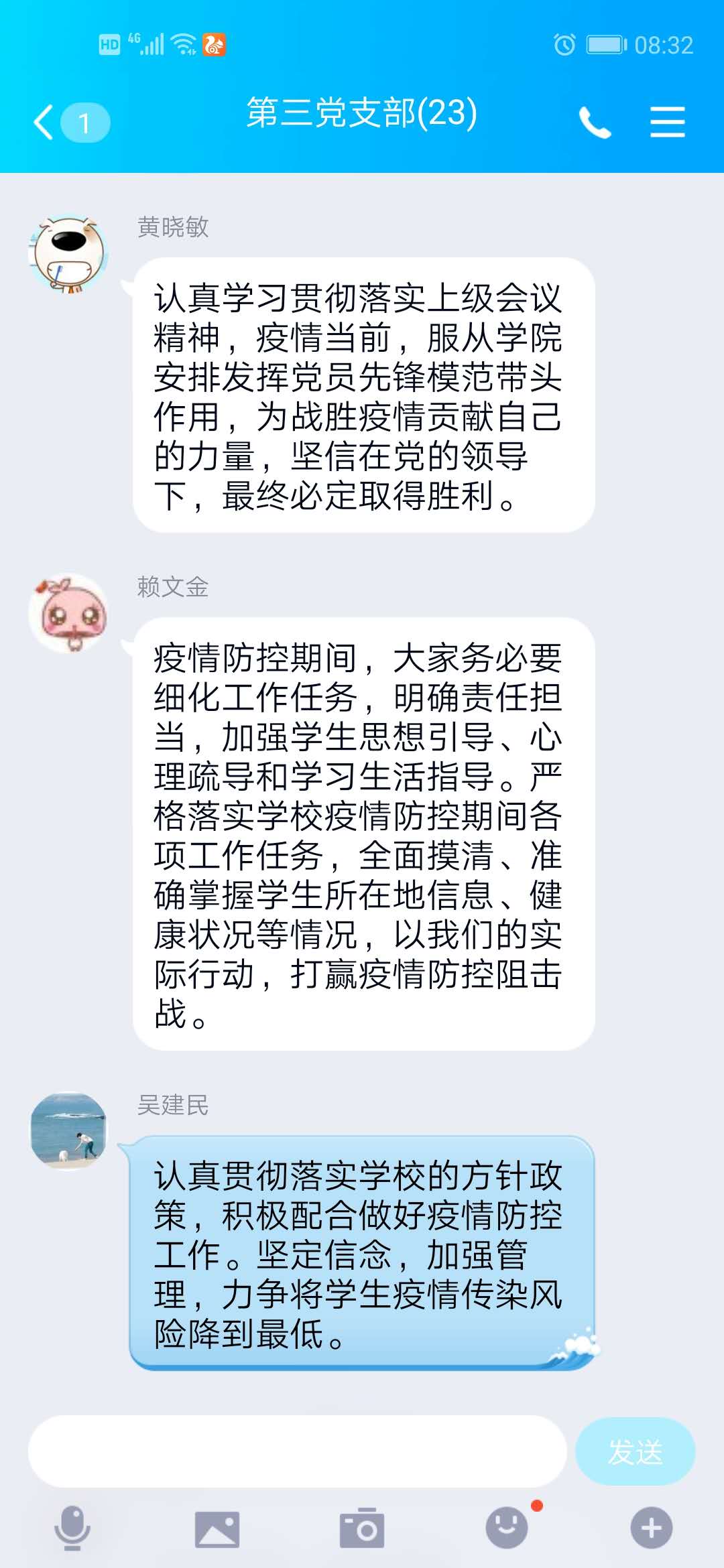 2月20日,藥學(xué)系學(xué)生黨支部以QQ群為載體,通過(guò)線上語(yǔ)音集中學(xué)習(xí)福建省教育廳《關(guān)于引導(dǎo)高校師生有序返校的通知》及《福建衛(wèi)生職業(yè)技術(shù)學(xué)院新型冠狀病毒肺炎疫情防控工作方案》等兩份文件精神。