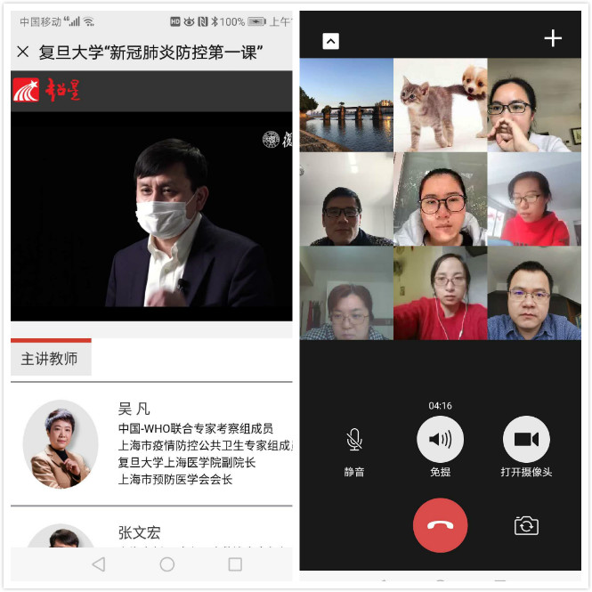 “硬核教授”張文宏與“疾控女俠”吳凡從臨床醫學、流行病學、社會治理等多角度介紹了新冠肺炎相關防控知識與政策,著重介紹了抗疫期間校園內的防控措施。“新冠肺炎防控第一課”結束后,支部書記鄧元榮立即組織支部全體成員通過微信視頻連線開展線上專題黨課,交流學習心得。鄧元榮同志以奮戰在一線、舍身忘我的優秀醫務工作者為例,強調黨員的帶頭作用。