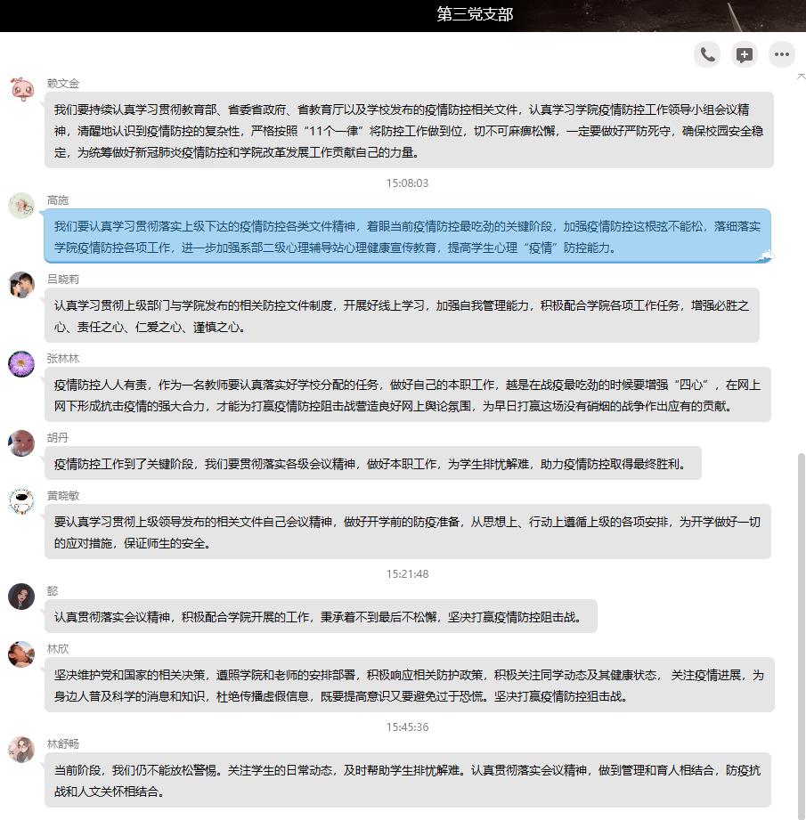 通過本次集中學習,支部全體黨員面對疫情的站位進一步提高、覺悟進一步提升,全體師生黨員普遍認為,在疫情緊要關口更要咬緊牙關,認清疫情防控的復雜性與嚴肅性,立足本職、嚴防死守、做好“11個一律”,確保校園安全穩定,為統籌新冠肺炎疫情防控和學院改革發展貢獻自己的力量。