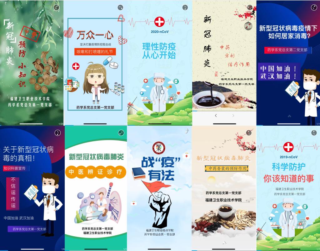 疫情防控期間,黨員們不忘初心,響應政府號召居家防疫,每天除了日常教學工作,也在想方設法為防控疫情貢獻力量,支部服務的重心由線下轉到線上,防疫宣傳成為當下支部服務的重點,支部黨員自覺運用專業優勢開展防疫宣傳:鄭煒同志制作防疫H5《戰“疫”有法》,宣傳疫情防控中需要注意的法律常識,何舒瀾、陳鈺、林玲同志制作防疫宣傳H5《新冠肺炎中藥預防小知識》《新冠肺炎中藥香囊預防作用》《中醫辨證診療新型冠狀肺炎》《新冠肺炎中藥方劑的治療作用》,宣傳中醫藥預防治療方法在新冠肺炎中發揮的重要作用。入黨積極分子張麗華老師一口氣制作了《咳嗽和打噴嚏的禮節》《關于新型冠狀病毒的真相》《理性防疫,從心開始》《科學防護,你該知道的事》等多個防疫宣傳H5,科普防疫方法,受到大家的歡迎。看到老師忙綠,學生們也都沒閑著,積極配合教師做好防疫宣傳:18中藥302班的林歡歡同學說,“看著很多黨員前輩們奮力奔向疫情第一線,雖然我不能像他們一樣,但也要默默為武漢加油,同時勤洗手,不出門,積極配合老師做好各項工作。”17藥學305班的陳萍萍同學說,“身為醫學生,我本應還在醫院里實習,但是學校為了保護我們暫停了實習工作。看到老師們用自己的專業知識,開展防疫宣傳,我們積極配合責無旁貸。” 有了支部黨員和積極分子的共同努力,支部的防疫宣傳工作開展順利,一個個防疫宣傳H5,一篇篇精心準備的宣傳稿,都記錄著防控疫情期間藥學系樣板支部宣傳工作的點點滴滴。