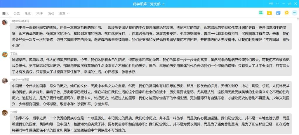 支部書記鄧元榮同志在QQ群中發布文檔資料,支部成員通過文字與圖片回顧了福州兩次淪陷的歷史。鄧元榮同志強調歷史看似已經過去,但它卻融在我們生活的這個國家和社會的血液中,歷史需要被銘記。重溫這段慘痛的歷史,它提醒我們:勿忘國恥,保衛祖國 ,珍愛和平,在慘痛中得到教訓,振興我中華。