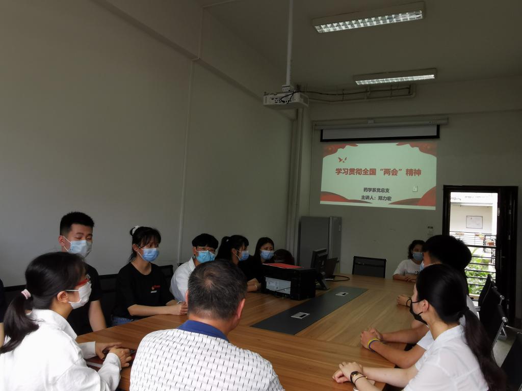 2020年6月11日,藥學系黨總支書記鄭力宏在系部會議室為18級團學干部講授一場以《學習貫徹全國兩會精神》為主題的形勢與政策課。