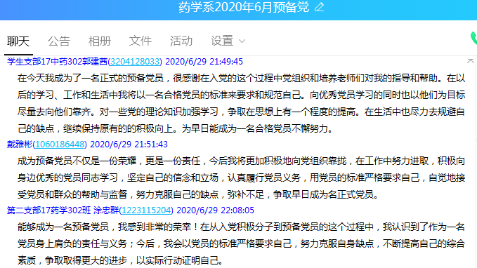 6月29日,藥學系各黨支部組織召開線上支部黨員大會,討論接收13位師生黨員發展對象為中共預備黨員。經宣讀入黨志愿書、入黨培養人介紹發展對象情況、對發展對象進行評議、投票表決等環節,13 位同志順利通過黨組織審核,成為中共預備黨員。會上,新發展的預備黨員們紛紛發表入黨感言,表明入黨決心。