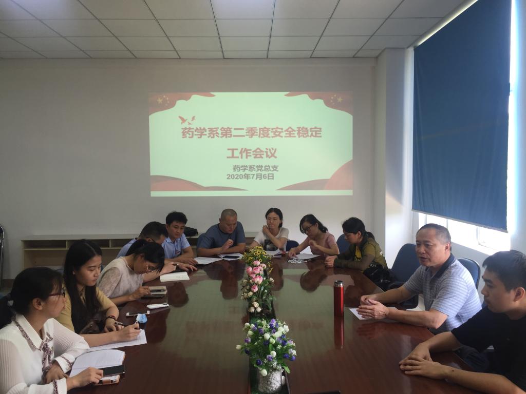 2020年7月6日,藥學系在系部會議室召開第二季度意識形態工作會議暨6月份支部書記例會,藥學系總支委員、各支部書記、全體輔導員到場參會,會議由鄭力宏書記主持。