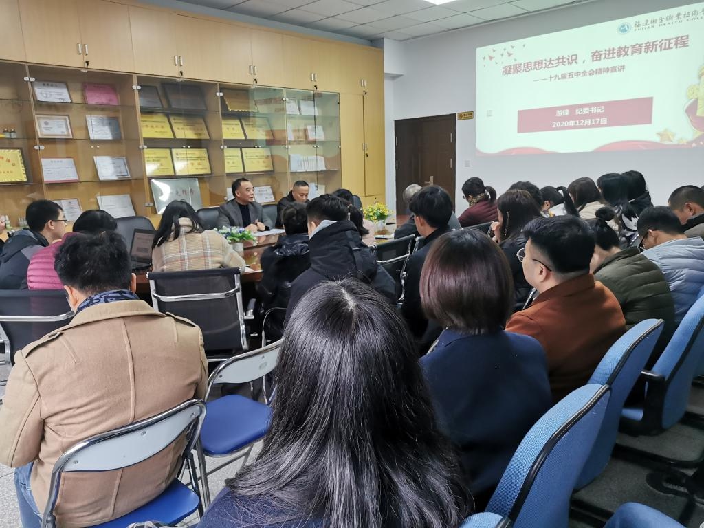2020年12月17日,校紀(jì)委書記游鋒蒞臨藥學(xué)院,以“凝聚思想達(dá)共識,奮進(jìn)教育新征程”為題,在藥學(xué)院會議室講授黨的十九屆五中全會專題黨課。藥學(xué)院黨總支書記鄭力宏主持黨課,藥學(xué)院全體黨員、20藥學(xué)301班學(xué)生代表到場聆聽。