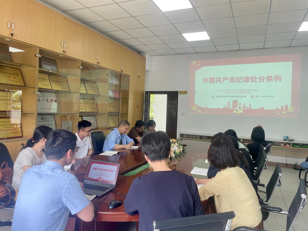 為深入開展黨紀學習教育,引導支部黨員學紀、知紀、明紀、守紀,進一步強化紀律意識、加強自我約束,5月9日上午,藥學院第二黨支部在藥學院會議室開展《中國共產黨紀律處分條例》(以下簡稱《條例》)的專題學習會。本次會議由黨支部書記劉丹丹主持,全體教師黨員積極參與。