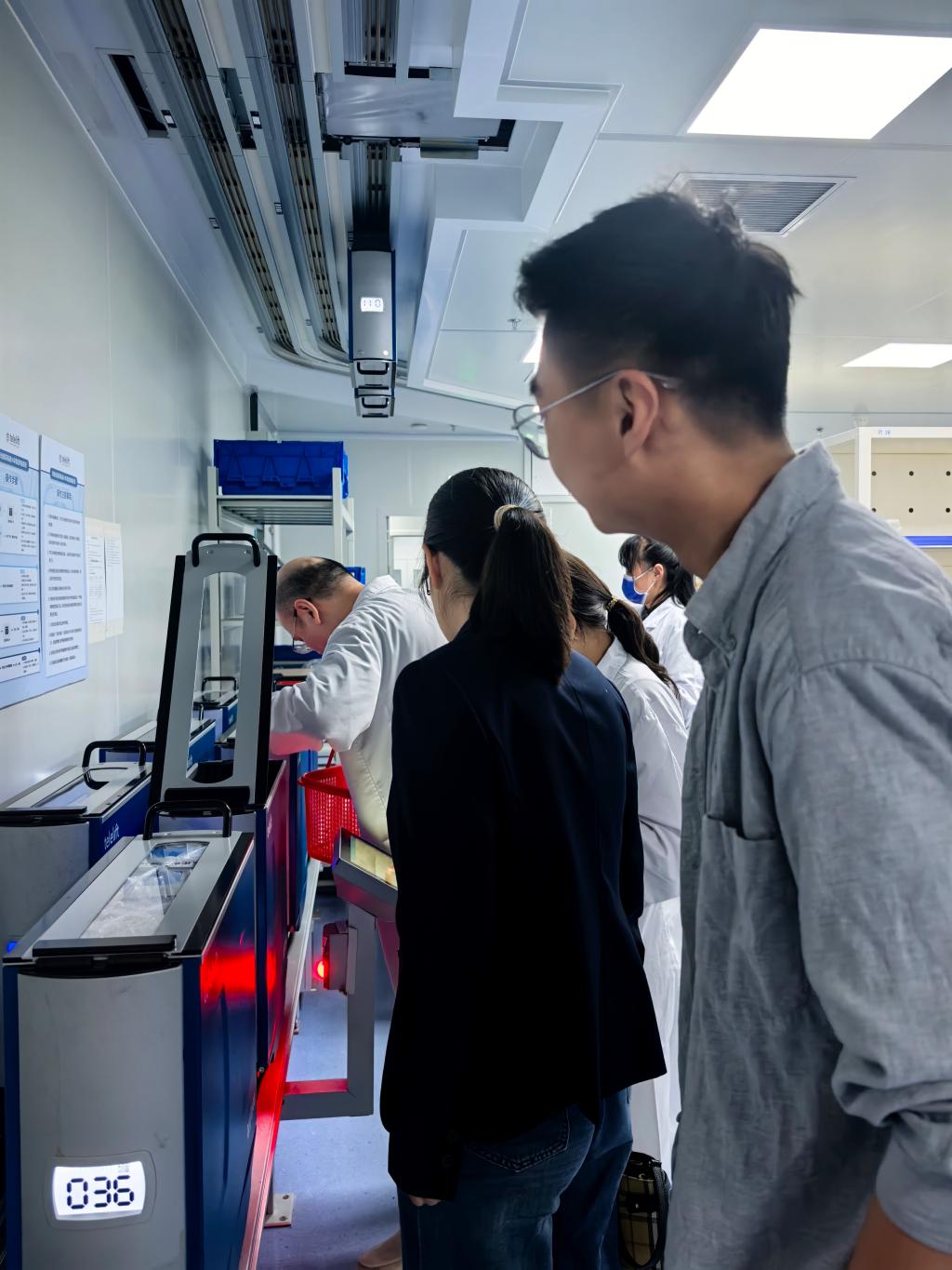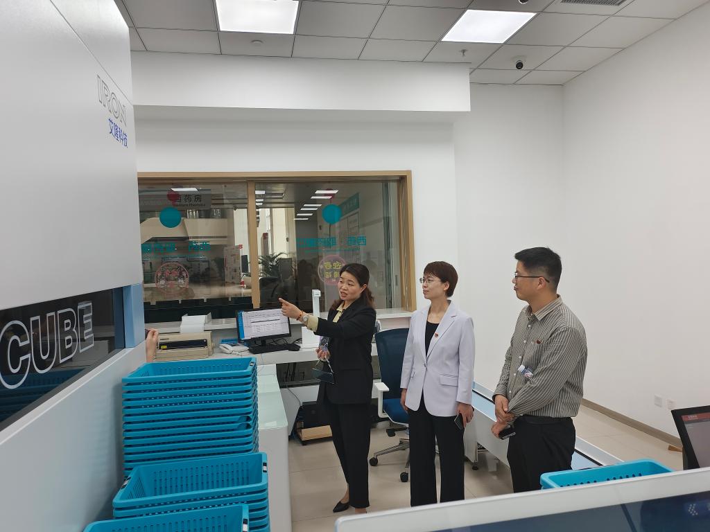 座談會后,藥學院一行在俞曉玲書記的引導下,參觀了智慧藥房、臨床藥學、精準藥學平臺等關鍵功能區(qū)。在智慧藥房參觀環(huán)節(jié),俞曉玲書記詳細介紹了“庫發(fā)一體”智慧藥房,實現(xiàn)藥品從入庫到分發(fā)全流程自動化、智慧化,展示了智能化藥房的高效運作,讓教師們直觀感受到數(shù)字化轉型對藥學服務的革新作用。劉丹丹書記表示,將結合調研成果優(yōu)化教學內容,培養(yǎng)適應智慧醫(yī)療需求的復合型人才。