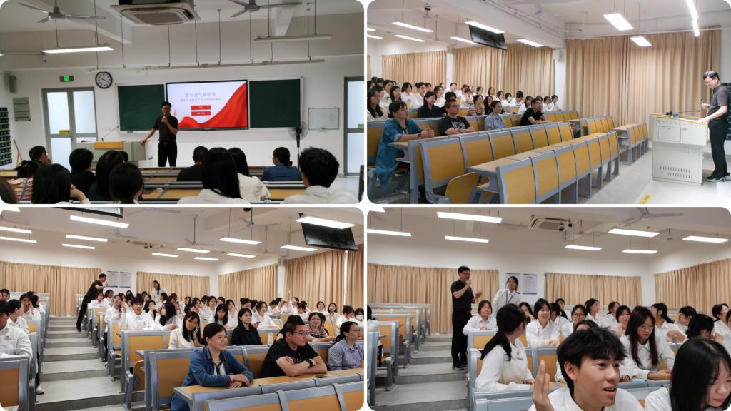 葉海書記首先回顧了2012年中央政治局審議通過中央八項規(guī)定的背景,通過展示黨的十八大以來全面從嚴治黨取得的顯著成效,闡釋了黨中央以習近平同志為核心的黨中央推動黨的自我革命的“徙木立信之舉”和生動實踐,以及中央八項規(guī)定作為“作風建設(shè)金色名片”的歷史意義。隨后,他通過對比中央八項規(guī)定與中央八項規(guī)定精神的內(nèi)在關(guān)聯(lián),幫助師生更深刻理解中央八項規(guī)定及其精神引領(lǐng)作用。最后,他結(jié)合百年變局加速演進和國際競爭加劇的形勢,鼓勵同學(xué)們以黨的優(yōu)良傳統(tǒng)和作風為指引,校準初心坐標,筑牢信仰之基,不斷錘煉自己,使自己在學(xué)思踐悟中知行合一,在政治上更加堅定、精神上得以升華、實踐上融會貫通。