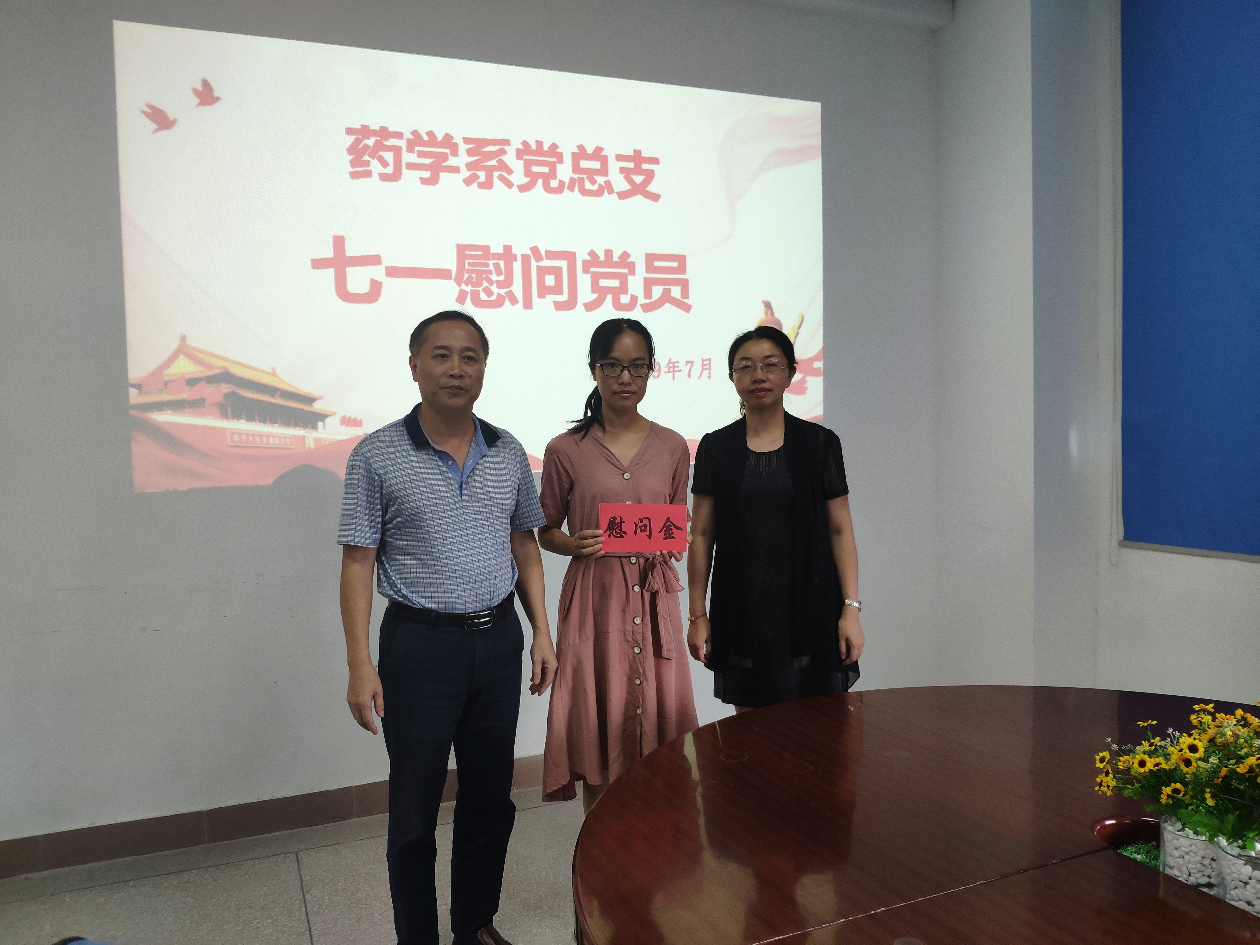 在歡慶中國共產黨成立98周年之際,為弘揚黨的光榮傳統和優良作風,充分體現黨組織對黨員的關心與愛護,藥學系黨總支開展七一慰問活動,看望困難黨員,為他們送去慰問金及節日的問候。
