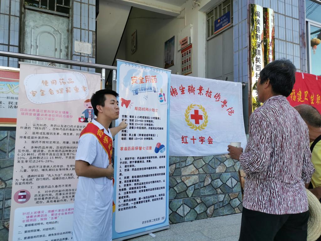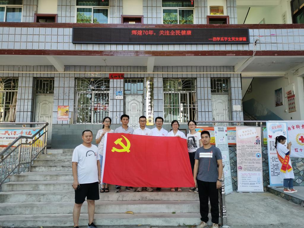 為慶祝中華人民共和國成立70周年,推進“不忘初心、牢記使命”主題教育,服務百姓、提高居民健康素養,傳播健康理念,9月19日,藥學系學生黨支部、團總支攜手院紅十字會赴閩侯縣關西村展開特別主題黨日活動——“我與祖國共奮進·喜迎中華人民共和國成立70周年”。