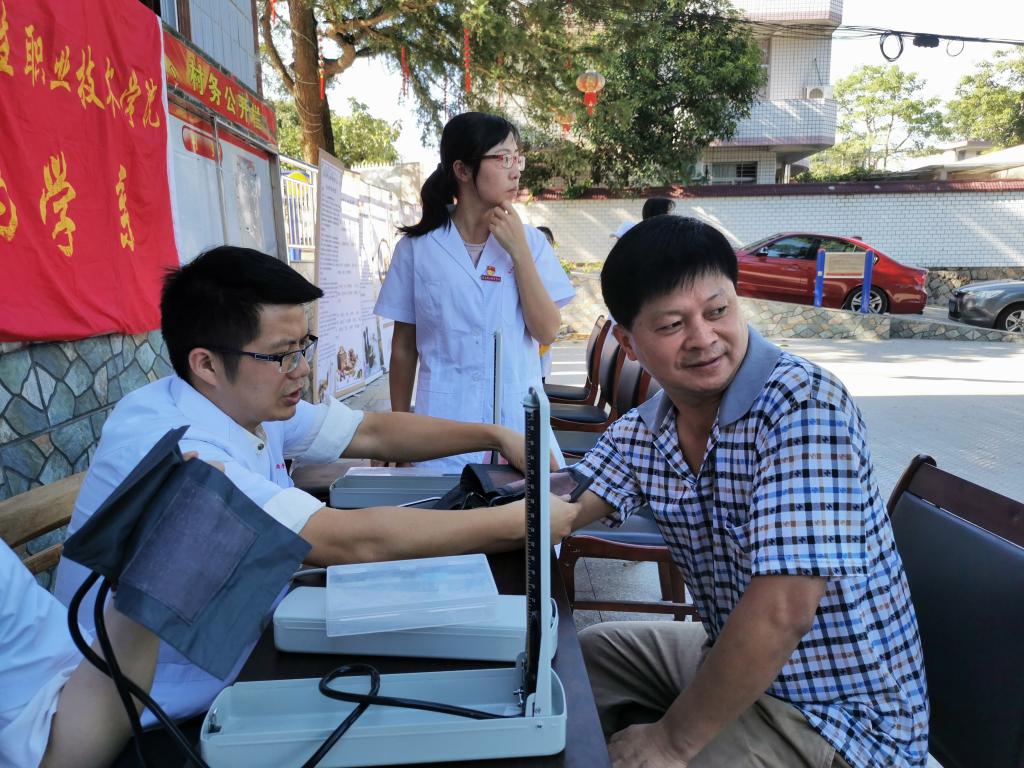 迎著炎炎烈日,支部黨員和志愿者們早早地到達關西村布置現場。此次活動主要為當地村民測量血壓、開展急救知識培訓、提供特色花茶贈飲等。活動期間,黨員們認真地為村民測量血壓,用言語去交流,用耳朵去傾聽,給就診者提供準確的身體健康數據及相關注意事項。支部委員黃曉敏同志為村民講解藥品使用和保管注意事項,還為村民送上我系自制的特色花茶,消暑解渴。