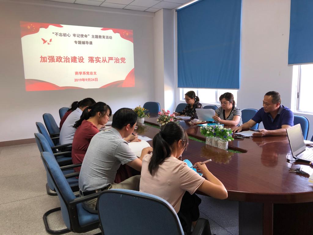 9月24日下午,藥學(xué)系黨總支在系部會(huì)議室開(kāi)展第五次主題教育專(zhuān)題研討會(huì)暨 “加強(qiáng)雙帶頭人建設(shè),提高黨支部戰(zhàn)斗力”專(zhuān)題輔導(dǎo)課。藥學(xué)系黨總支書(shū)記鄭力宏主持會(huì)議,黨總支委員、支部書(shū)記參加了本次研討交流會(huì)。