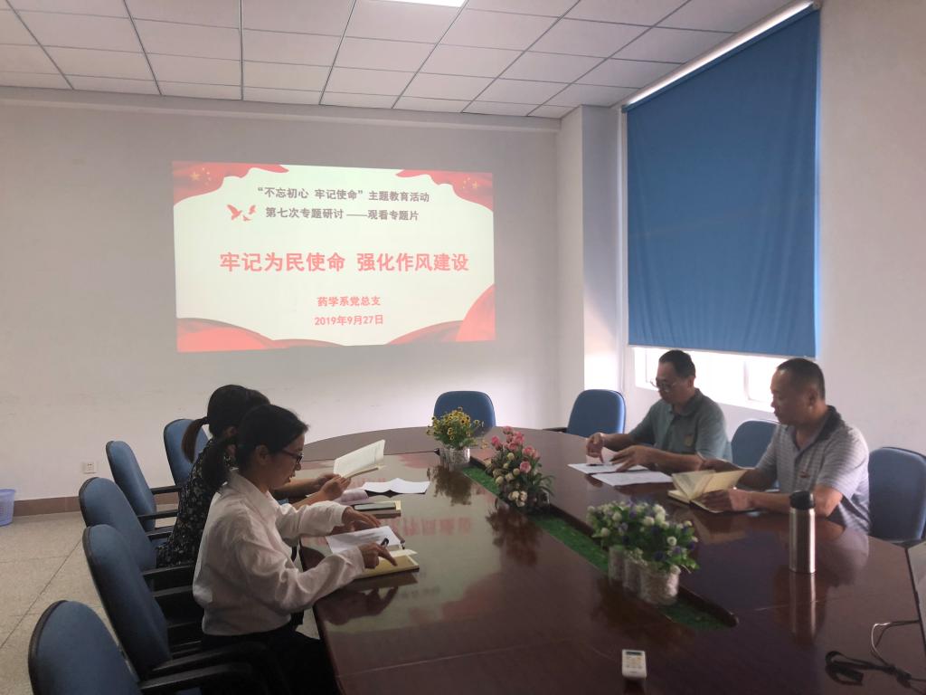 9月27日下午,藥學(xué)系黨總支在系部會(huì)議室開展主題為“牢記為民使命,強(qiáng)化作風(fēng)建設(shè)”專題學(xué)習(xí)研討交流會(huì)。藥學(xué)系黨總支書記鄭力宏同志主持會(huì)議,藥學(xué)系副主任肖健(主持工作)、黨總支副書記賴文金、系副主任潘雪豐參加了本次研討交流會(huì)。會(huì)上,大家共同觀看了紀(jì)錄片《習(xí)近平治國方略 中國這五年》第一集“人民情懷”、第二集“大國治理”。