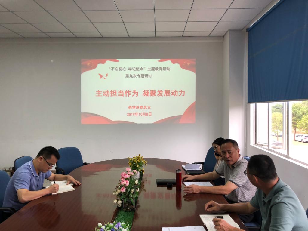 10月8日上午,藥學系黨總支在系部會議室開展主題為“主動擔當作為,凝聚發展動力”專題學習研討交流會。藥學系黨總支書記鄭力宏主持會議,藥學系副主任肖健(主持工作)、黨總支副書記賴文金、副主任潘雪豐及支部書記參加了本次研討交流會。