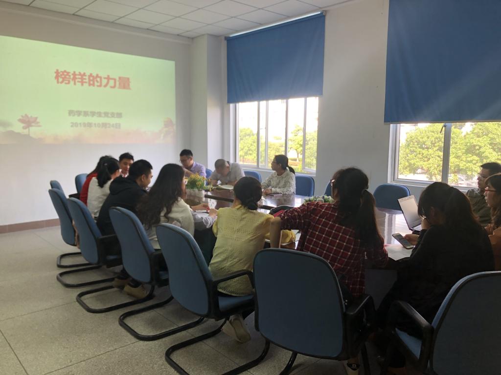 10月24日,藥學系學生黨支部在藥學系會議室召開專題學習研討,學習了福建省第二屆“最美教師”高志凡同志和福建醫(yī)科大學附屬第一醫(yī)院神經(jīng)內科主任醫(yī)師慕容慎行同志的先進事跡,并一起觀看了視頻《榜樣4》。