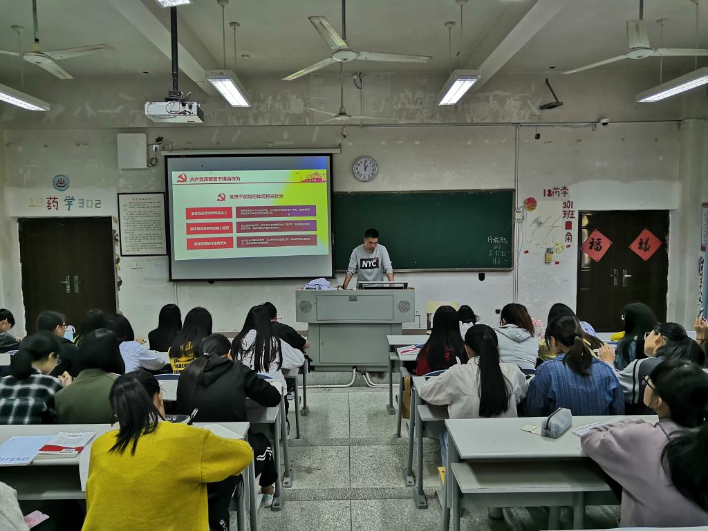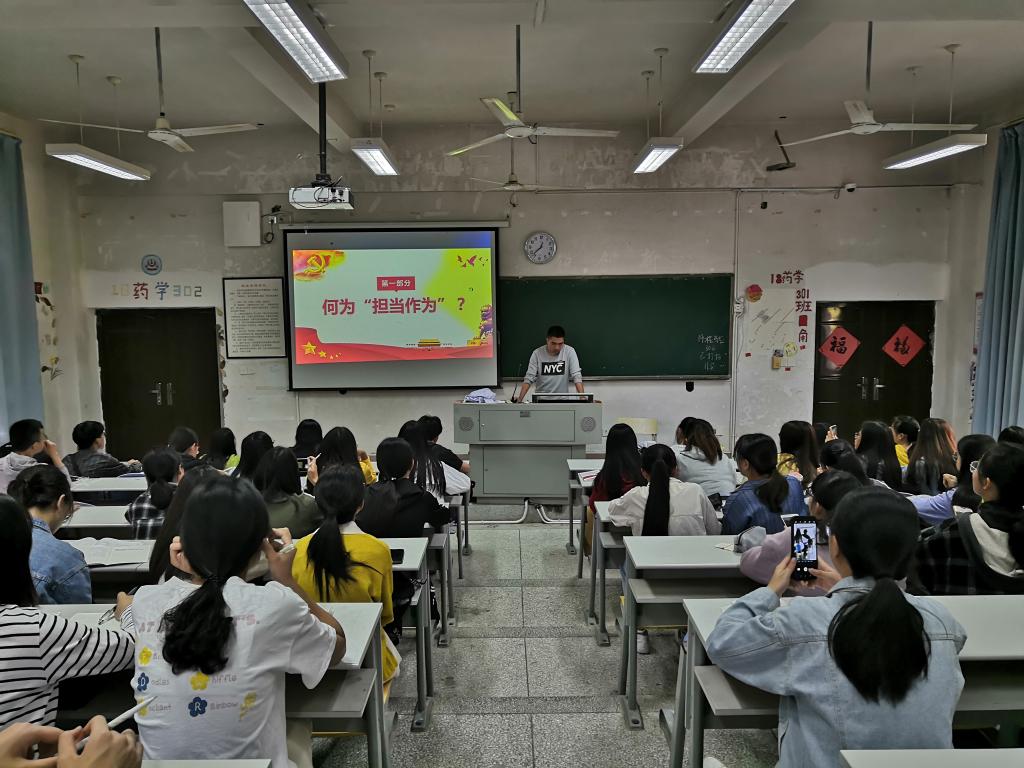 為進一步深入學習黨的光輝歷史,增強學員們敢于擔當主動作為的意識,2019年11月11日,藥學系黨總支于藥一階開展業余分黨校第八講,本次學習的主題是“敢擔當有作為、筑夢新時代”,由藥學系學生黨支部吳建民老師主講。