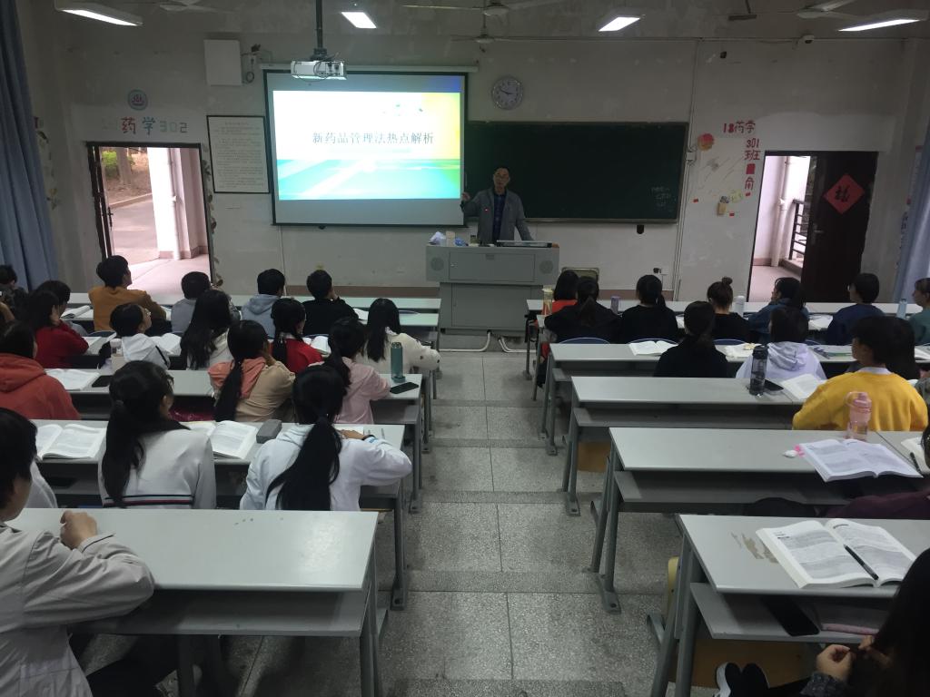 為加深同學們對當前藥品市場新形勢的了解,進一步掌握健康中國新理念,2019年11月22日,藥學系肖健副主任在藥一階為18藥學專業學生上主題為《新藥品管理法熱點解析》形勢與政策課。