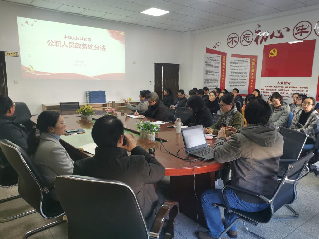 2021年1月14日,藥學院組織全體教職工在會議室開展《中華人民共和國公職人員政務處分法》專題學習,會議由藥學院黨總支副書記賴文金主持。