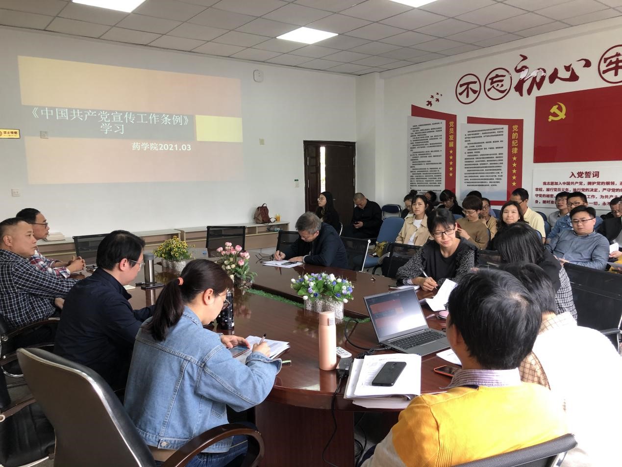 為提高藥學院教職工的政治意識和宣傳工作水平,3月18日藥學院組織全體教職工學習《中國共產黨宣傳工作條例》。宣傳工作是黨的一項重要工作,是中國共產黨領導人民不斷奪取革命、建設、改革勝利的優良傳統和政治優勢。制定頒布《條例》,體現了以習近平同志為核心的黨中央對宣傳工作的高度重視,標志著宣傳工作科學化規范化制度化建設邁上新的臺階。