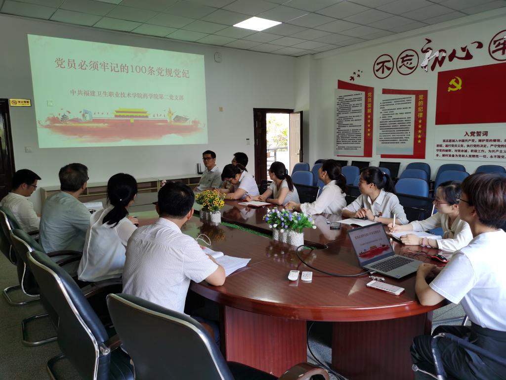 為了進一步學習貫徹《中國共產黨紀律處分條例》,嚴守黨紀上遠離違紀紅線,同時為了進一步全面貫徹黨的教育方針,落實立德樹人根本任務,藥學院第二黨支部于2021617日召開專題學習會,深入學習《黨員必須牢記的100條黨規黨紀——解讀》(以下簡稱《100條黨紀黨規》)與《中國共產黨普通高等學校基層組織工作條例》(以下簡稱《條例》)。本次專題學習由藥學院第二黨支部書記劉丹丹同志主持。