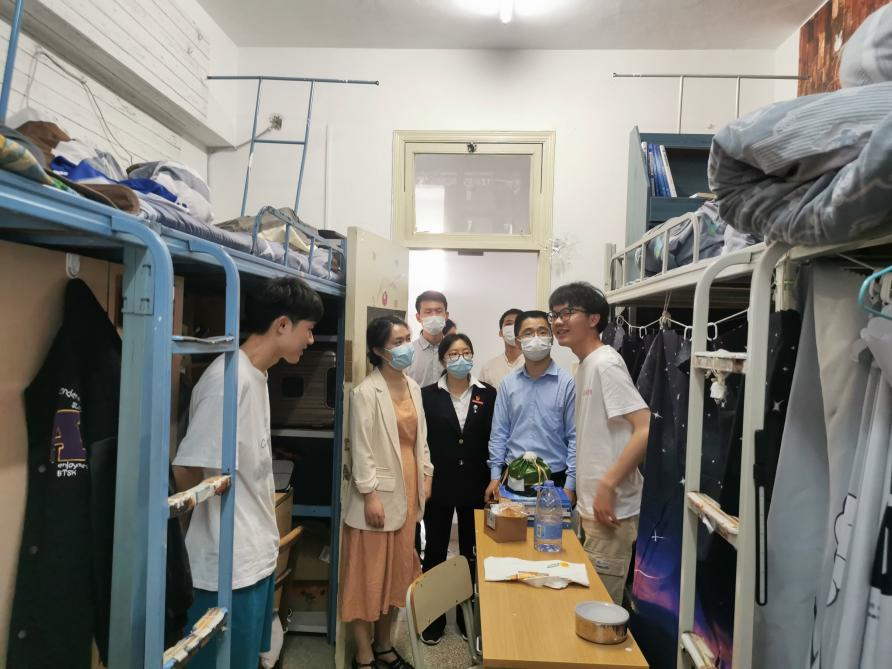在做好疫情防控各項工作,從嚴落實學校各項防控措施的同時,我院黨總支林穎峰書記,學院朱扶蓉院長,賴文金副書記帶領輔導員們一直堅持走訪學生公寓,走進學生群體,真誠關心每一位同學,主動了解學生日常所需,及時解決學生困難。與同學們談心談話、噓寒問暖,安撫學生情緒,開展心理疏導工作,引導學生理性面對疫情,為學生傳遞抗疫精神,幫助學生樹立抗疫思想。