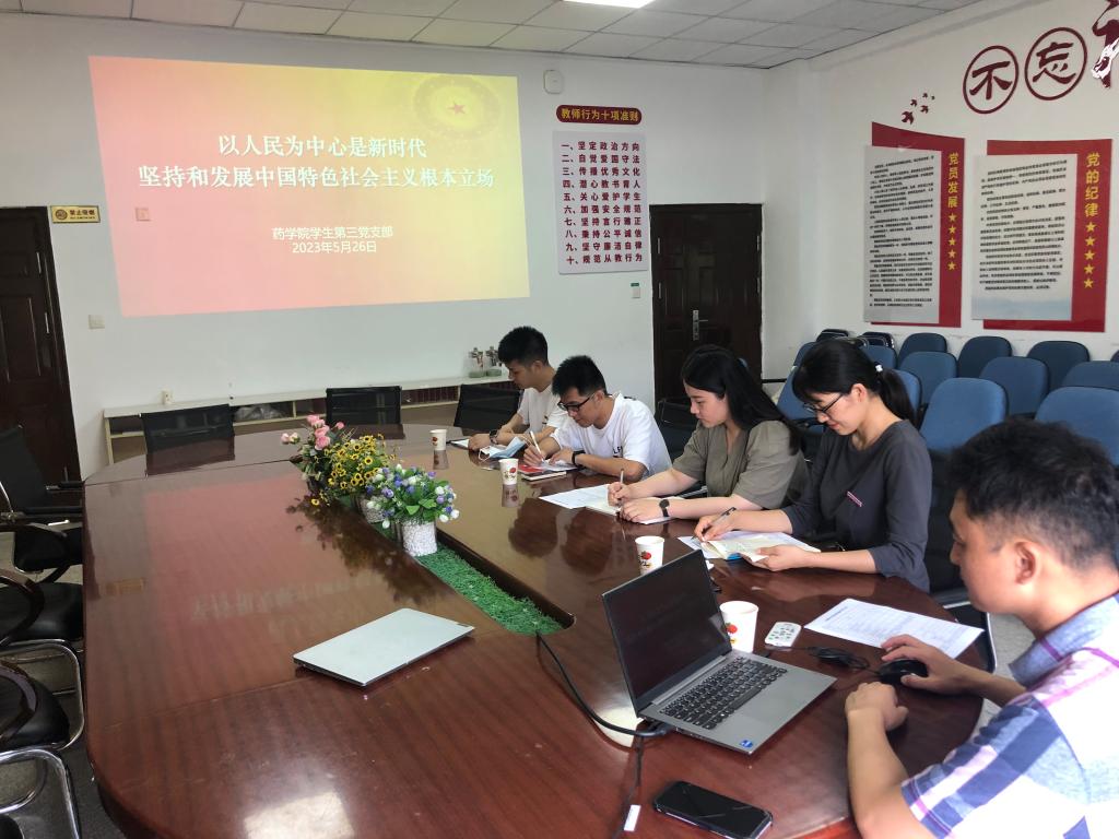 5月26日,藥學(xué)院學(xué)生第三黨支部書記陳翰在藥學(xué)院會議室開展題為《以人民為中心是新時代堅(jiān)持和發(fā)展中國特色社會主義根本立場》的黨課,學(xué)生第三黨支部全體教師黨員參與。
