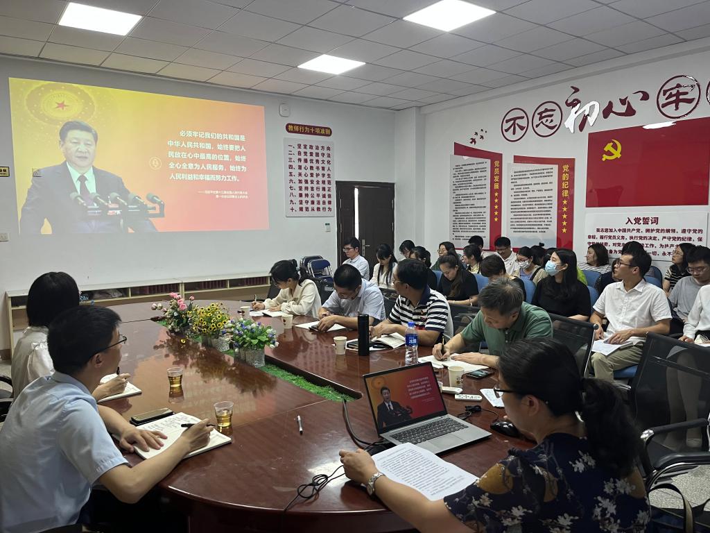 6月8日,副校長黃銘珊為藥學院黨總支全體黨員講授《以人民為中心 堅持和發展中國特色社會主義》主題教育專題黨課,學校主題教育協調推進四組成員到場參加。