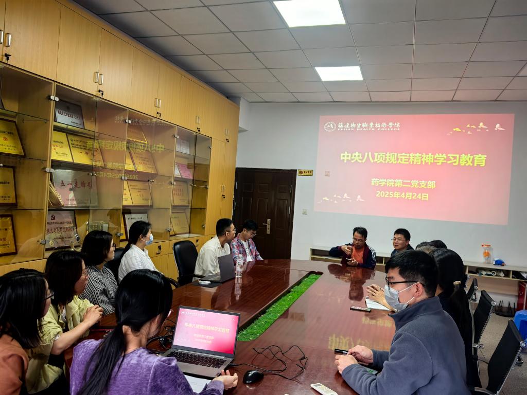 為深入學習理解中央八項規定及其實施細則的主要內容,4月24日下午,藥學院第二黨支部在藥學院會議室召開“深入貫徹中央八項規定精神學習教育”專題學習會。會議由黨支部書記劉丹丹同志主持,全體教師黨員參加。