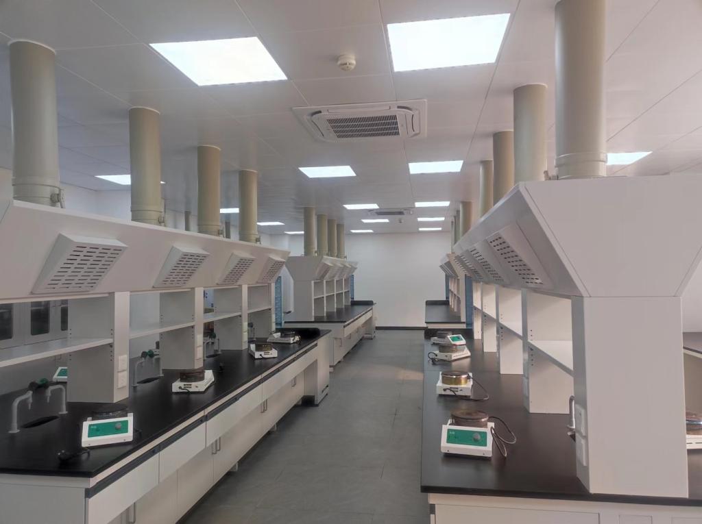 基礎化學實驗室有面積為120m2的學生實驗室2間,面積為30m2的預備室1間。主要設備有GZX—DH—BS(S)—II系列電熱恒溫干燥箱,生物安全柜,投影儀,PP揮發排風試劑柜,循環多用水式真空泵,容聲電冰箱,吸頂空調,進行常規教學的成套儀器100套,配套的實驗桌、水槽、各種實驗試劑等。并為實驗室量身定做了通風柜與通風系統,使用有毒試劑或實驗過程中產生的有毒氣體能及時被設備排出,減少實驗室環境的污染。實驗室儀器設備總價值達71.7萬元。通過化學實驗培養學生的基本操作技能,它的教學目的掌握有關的化學基本知識、基本原理及基本實驗技能,了解這些知識、理論和技能在醫學上的應用,培養分析和解決涉及化學實際問題的能力,培養學生一絲不茍、嚴謹治學的科學態度,為今后的學習和工作打下一定的化學基礎。
