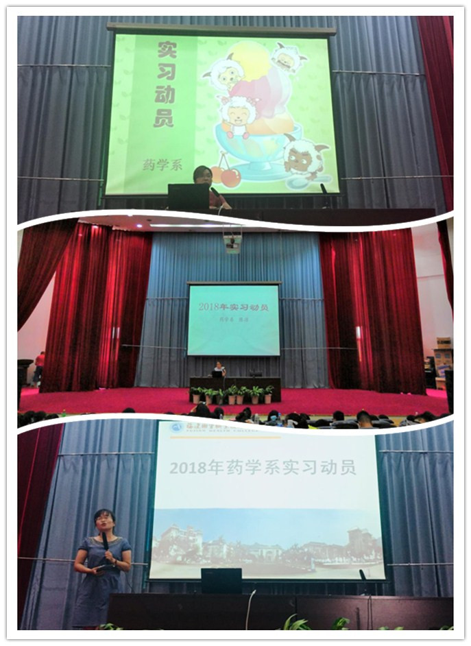 6月26日,2016級藥學系的實習動員大會在學術廳如期舉行。實踐科梁艷老師、系潘雪豐副主任、陳潔副書記、16級輔導員及全體學生參加了此次動員大會。
