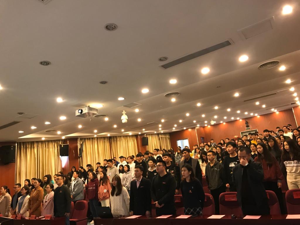 伴隨著莊嚴的國歌,開班典禮正式拉開帷幕。管理系團總支書記馮瑞華老師宣讀藥學系第十五期、管理系第四期業余分團校學員名單,要求學員們充分認識分團校培訓班的重要意義,認真參加各項培訓學習活動。隨后,業余分團校學員代表19藥學308班張淇楊同學上臺發言,他代表全體成員承諾:將嚴格遵守分團校各項規定,積極配合分團校工作,主動在學習、生活中實踐自己的諾言,為早日成為一名真正的共青團員而努力奮斗!