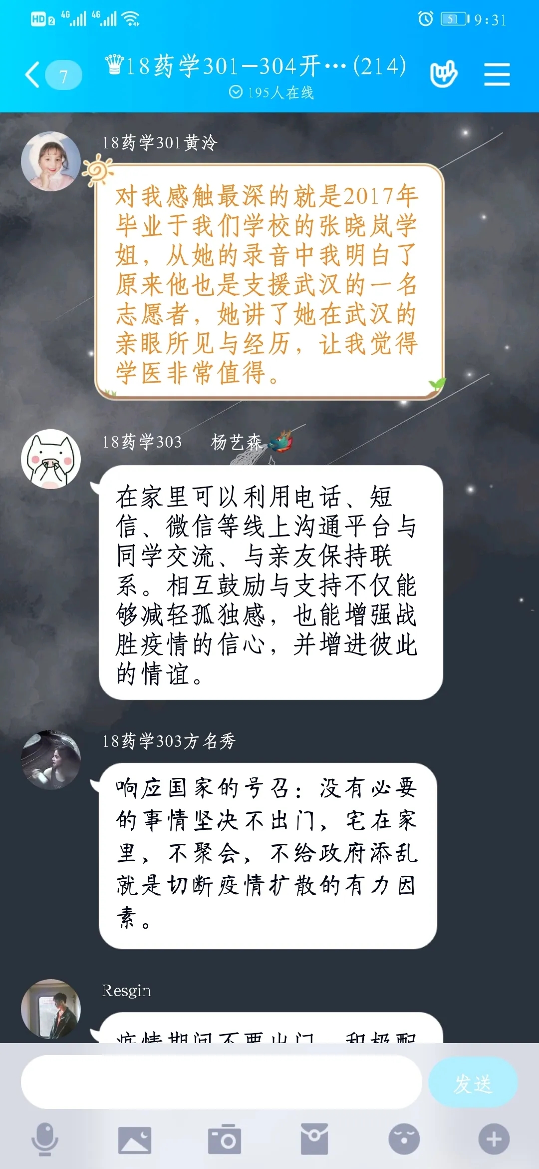 17藥學301班楊慶玲同學說:這封回信既是對醫學生的鼓勵,也是對逆行奮戰在抗疫前線、救死扶傷的廣大醫護工作者的鼓舞與肯定,而作為同樣在外實習的我而言,在疫情當前,雖不能“逆行奮戰”在抗疫前線,但是我仍時時刻刻關注著疫情。我會好好學習,把所學用到實處,理論聯系實際,用實際行動做一位黨和人民都信賴的醫護工作者。18藥學306班林櫟同學說:在這封回信中習近平總書記高度肯定了醫生是人民健康的守護者,高度贊揚了醫生用行動詮釋了白衣天使救死扶傷的崇高精神!這群兢兢業業、無私奉獻的醫學生志愿者,用實際行動生動地詮釋了當代青年學子的作為與擔當,他們不怕苦累、不懼疫情,用專業和敬業,用信念和執著,真切地展示了團員青年的時代風采,我們應當向他們學習。