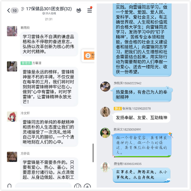 本次活動面向全系團員青年,共計42個團支部參與其中,各團支部圍繞主題,依托QQ、微信等網絡視頻會議平臺,分別以PPT解讀、視頻交流、詩朗誦、觀看雷鋒系列影片、問卷調查等多種形式展開。其中17藥學302班團支部結合本次疫情,圍繞雷鋒精神,通過觀看雷鋒電影和紀錄片,帶領同學們加深對雷鋒的理解;19藥經管301班則通過PPT解讀的形式和同學們分享雷鋒同志的精神和事跡,引導同學們以實際行動講好新時代雷鋒故事。